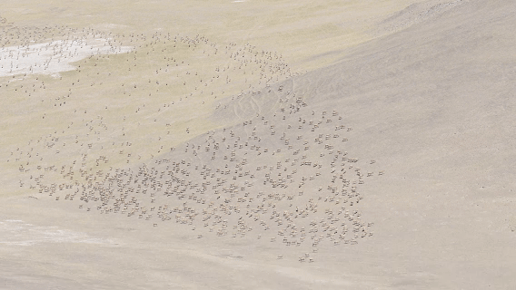 羌塘國家級自然保護區(qū)中正在遷徙的龐大藏羚羊群。