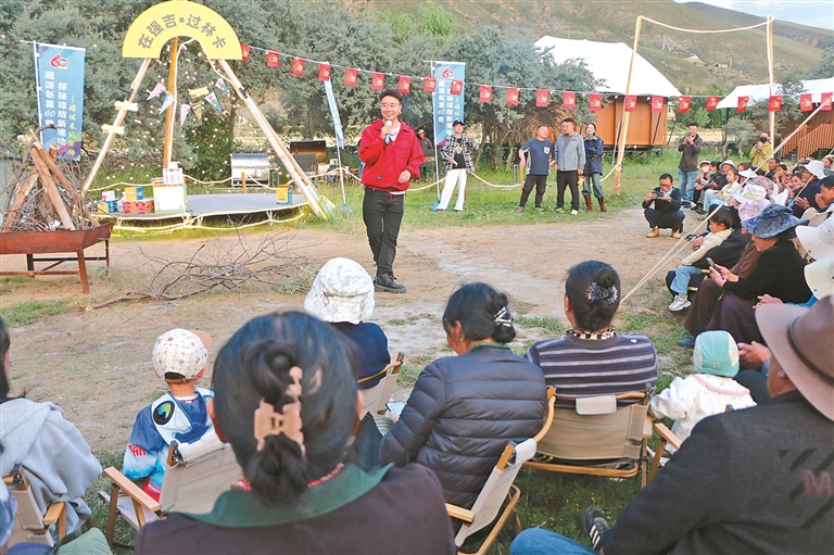 傍晚時(shí)分,強(qiáng)吉村篝火晚會(huì)開(kāi)啟。村民身著盛裝,攜手跳起鍋莊,網(wǎng)絡(luò)達(dá)人紛紛舉起相機(jī)加入行列。歌聲、笑聲、鼓聲融為一體,久久回蕩。
