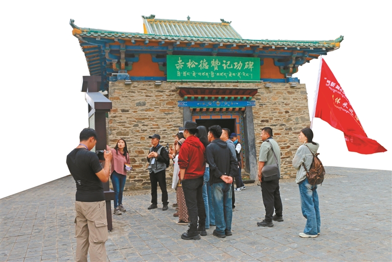 圖為網(wǎng)絡(luò)達(dá)人參觀拍攝瓊結(jié)縣赤松德贊記功碑。