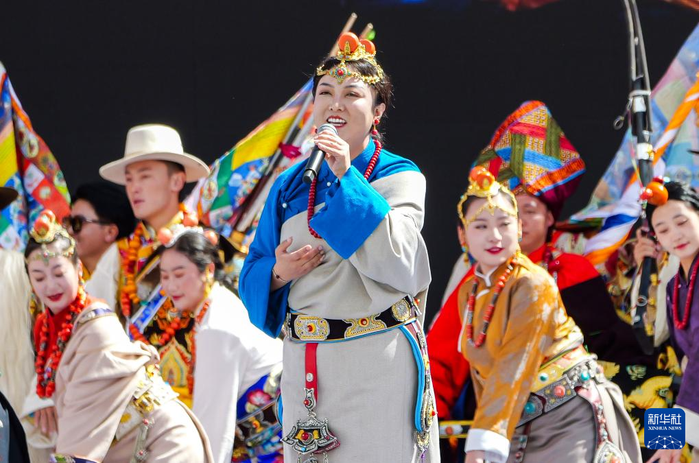 這是9月15日拍攝的開幕式上的女聲獨(dú)唱《藏東明珠》。新華社記者 格桑朗杰 攝