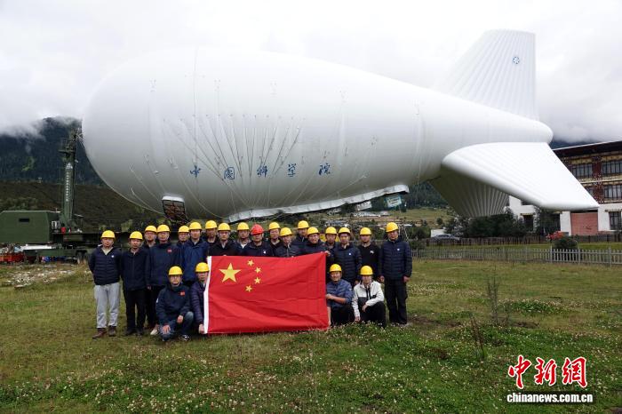 9月18日下午,“極目一號(hào)”浮空艇大氣觀測(cè)試驗(yàn)完成任務(wù)前相關(guān)測(cè)試工作,項(xiàng)目團(tuán)隊(duì)代表在現(xiàn)場合影。中新網(wǎng)記者 孫自法 攝