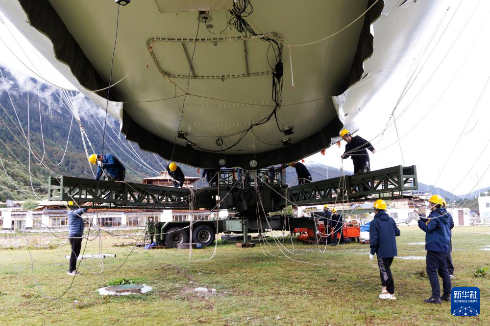 9月18日,“極目一號”浮空艇大氣觀測試驗現(xiàn)場,科研人員在操作輔助系索。新華社記者 金立旺 攝