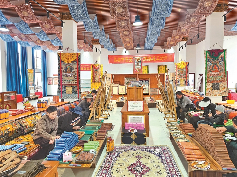 合作社成立后,始終秉持開放包容的理念。西繞尼瑪堅持技藝共享、共同致富,每年都會在村內(nèi)外定期開展免費培訓,毫無保留地傳授自己的心得經(jīng)驗。他的真誠吸引了桑珠榮村的男女老少,無論是白發(fā)蒼蒼的長者,還是年僅10歲的孩童,都會在空余時間來此學習。不僅如此,對于參與唐卡創(chuàng)作或藏香制作的村民,合作社還會按每日100元的標準支付勞動報酬,切實保障了大家的收益。據(jù)不完全統(tǒng)計,自2017年孵化基地建成以來,合作社已累計舉辦各類培訓40余場,接待了眾多考察交流團體。
