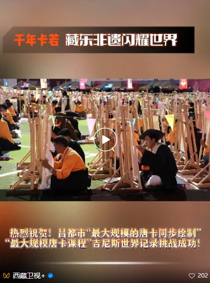 14時(shí)30分許,在全場觀眾的見證和期待下,吉尼斯世界紀(jì)錄官方認(rèn)證官熊文、阿諾克鄭重宣布:“2025年9月28日,在中國西藏自治區(qū)昌都市組織進(jìn)行的最大規(guī)模唐卡課程和最大規(guī)模的唐卡同步繪制吉尼斯世界紀(jì)錄官方挑戰(zhàn)中,有效參與人數(shù)均為1138人,超越挑戰(zhàn)目標(biāo),挑戰(zhàn)成功!這不僅是西藏昌都的榮譽(yù),更是每一位畫師、每一位工作人員共同創(chuàng)造的榮譽(yù),向世界展現(xiàn)了中國力量和唐卡藝術(shù)的精彩!”。