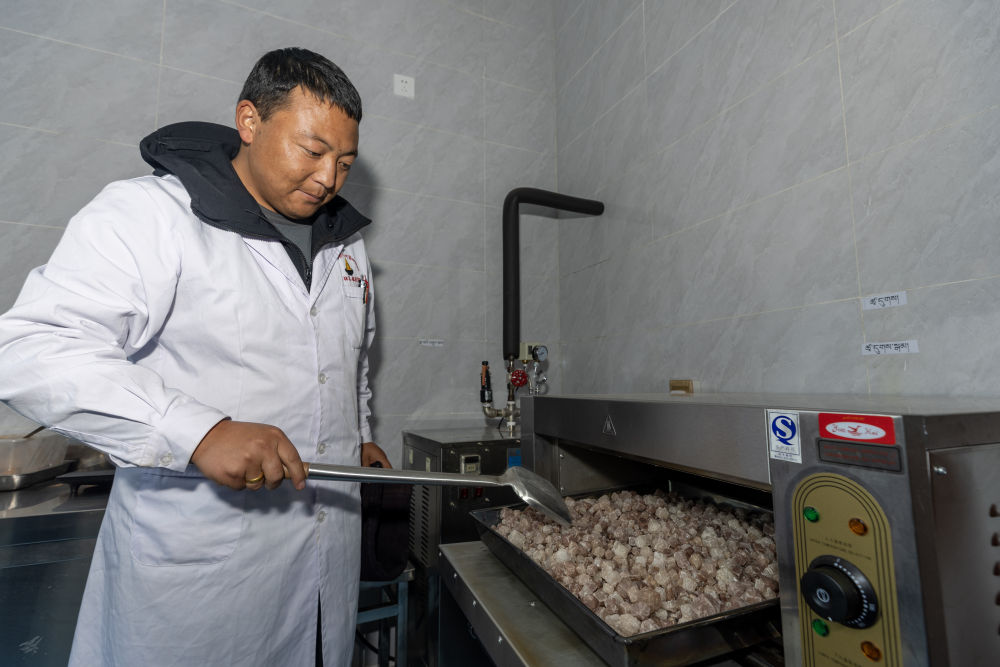 村民索朗美朵自公司成立起就在此工作,是一名包裝工,“有了穩(wěn)定收入,還能照顧家庭,明年準備重建房子”。