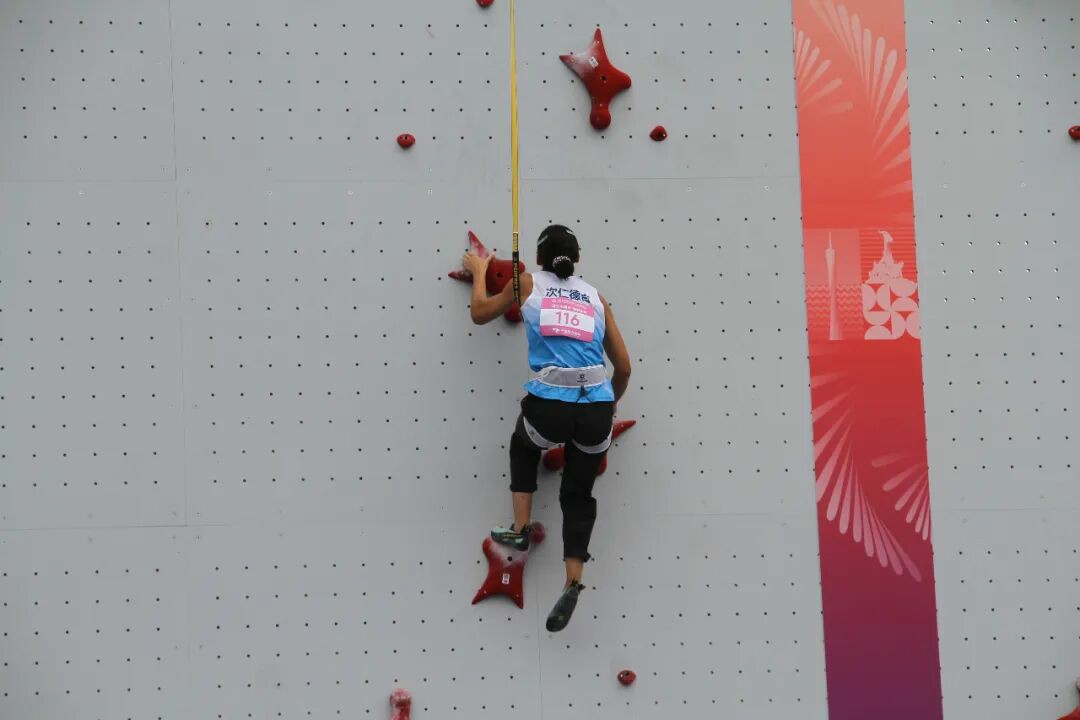 西藏隊(duì)次仁德吉在十五運(yùn)會攀巖項(xiàng)目女子速度攀巖預(yù)賽賽場上。