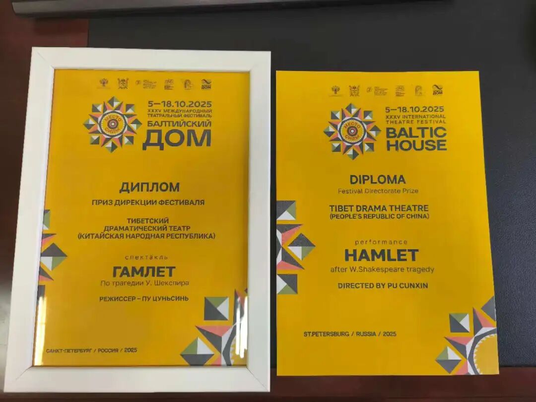 當(dāng)?shù)貢r間2025年10月11日、12日,由中國戲劇家協(xié)會主席、表演藝術(shù)家濮存昕導(dǎo)演,西藏自治區(qū)話劇團(tuán)演出的藏語版《哈姆雷特》登上俄羅斯圣彼得堡第35屆“波羅的海之家”國際戲劇節(jié)的舞臺。在國際舞臺的聚光燈下,雪域高原的古老語言與莎士比亞的經(jīng)典話劇碰撞出奇妙的火花。