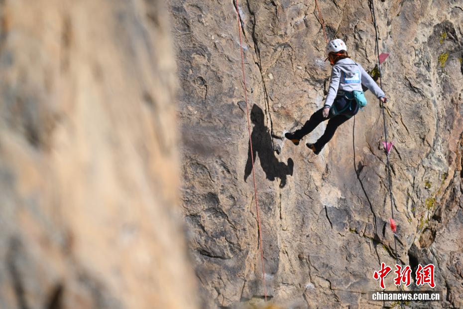 11月29日,2025西藏自治區(qū)攀巖自然巖壁公開賽在拉薩市奪底溝吉倉自然巖壁場地開賽。來自中國全國的70名運(yùn)動員、高校學(xué)生及社會攀巖愛好者參賽。中新社記者 貢嘎來松 攝