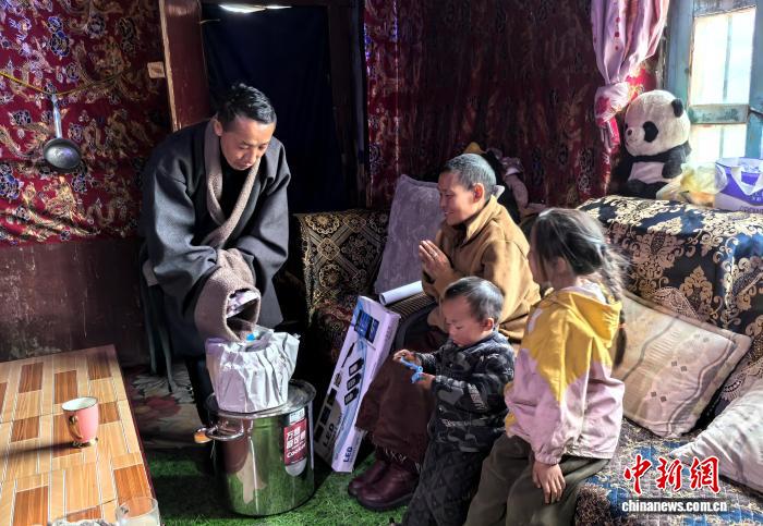 資料圖為扎西平措走村入戶為困難家庭送去家用設(shè)備。那曲市巴青縣雅安鎮(zhèn)格夏貢村駐村工作隊(duì) 供圖