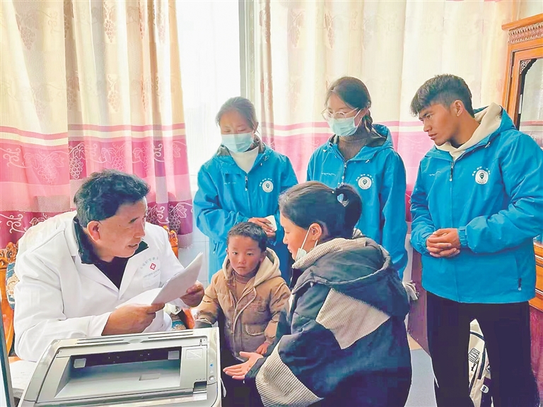 在志愿服務(wù)環(huán)節(jié)中,學(xué)生們體會到了付出的快樂。在日喀則市定日縣震區(qū)安置點(diǎn),他們消毒防疫、發(fā)放藥品、疏導(dǎo)群眾情緒;在鄉(xiāng)村社區(qū),他們?yōu)榇迕駵y量血壓、普及健康常識、設(shè)置手機(jī)地震預(yù)警;在知識小課堂上,為學(xué)生補(bǔ)課輔導(dǎo)、開展環(huán)保宣傳。這些看似瑣碎的小事,讓他們切實(shí)感受到了學(xué)醫(yī)者的社會價值,也錘煉了他們溝通協(xié)作、應(yīng)急應(yīng)變的實(shí)戰(zhàn)能力。