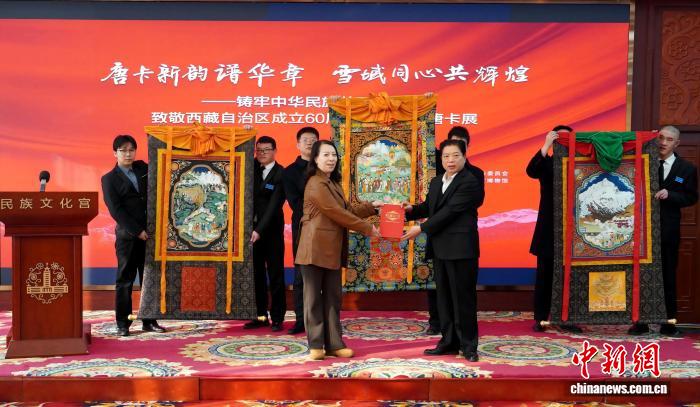 12月22日,“唐卡新韻譜華章 雪域同心共輝煌——鑄牢中華民族共同體意識”主題展覽在北京民族文化宮展覽館正式啟幕。此次展覽以唐卡這一非遺藝術(shù)為載體,全景呈現(xiàn)西藏自治區(qū)成立60年來的發(fā)展巨變,尤其聚焦黨的十八大以來的歷史性跨越,為觀眾獻(xiàn)上一場融合傳統(tǒng)技藝與時(shí)代精神的文化盛宴。