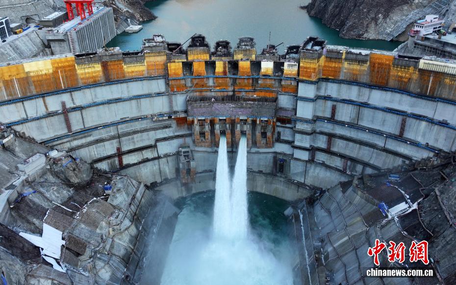 12月27日,中國在建海拔最高雙曲拱壩電站——葉巴灘水電站首批機(jī)組正式投產(chǎn)發(fā)電。葉巴灘水電站位于四川省甘孜州白玉縣與西藏自治區(qū)貢覺縣交界的金沙江干流上。水電站總裝機(jī)容量224萬千瓦,此次首批投產(chǎn)發(fā)電的機(jī)組為4號和3號機(jī)組。圖為12月25日,航拍葉巴灘水電站大壩。(無人機(jī)照片)中新社記者 王磊 攝