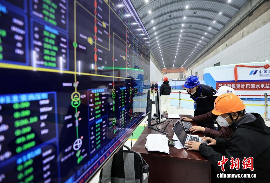 12月27日,中國在建海拔最高雙曲拱壩電站——葉巴灘水電站首批機(jī)組正式投產(chǎn)發(fā)電。葉巴灘水電站位于四川省甘孜州白玉縣與西藏自治區(qū)貢覺縣交界的金沙江干流上。水電站總裝機(jī)容量224萬千瓦,此次首批投產(chǎn)發(fā)電的機(jī)組為4號和3號機(jī)組。圖為12月24日,中控室值班人員正開展上位機(jī)監(jiān)盤工作。中新社記者 王磊 攝