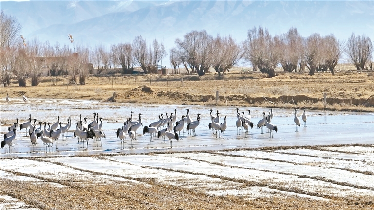 “每年10月底開始,黑頸鶴就從北方飛來越冬?!毖沧o(hù)員嘎旦仁增告訴記者,“這幾年保護(hù)力度加大,棲息環(huán)境更好了,來過冬的黑頸鶴一年比一年多。”