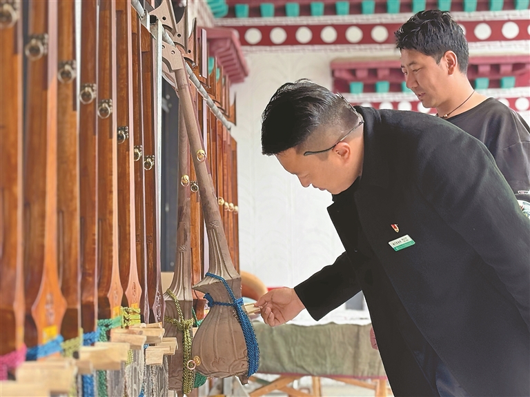 農(nóng)行西藏分行客戶經(jīng)理上門調(diào)研扎木念琴的制作銷售情況。