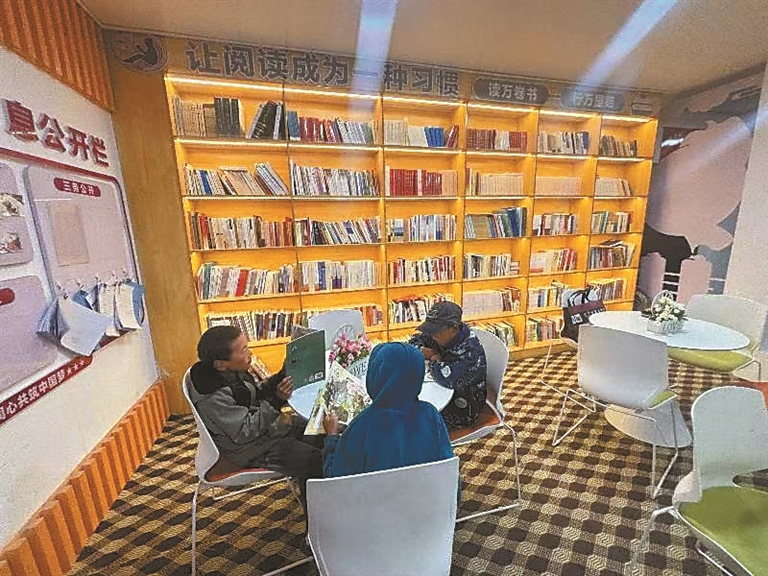圖為在嘉黎縣阿扎鎮(zhèn)德吉、雅杰社區(qū)黨群活動(dòng)中心牧家書屋,孩子們翻閱書籍。記者 汪純 攝