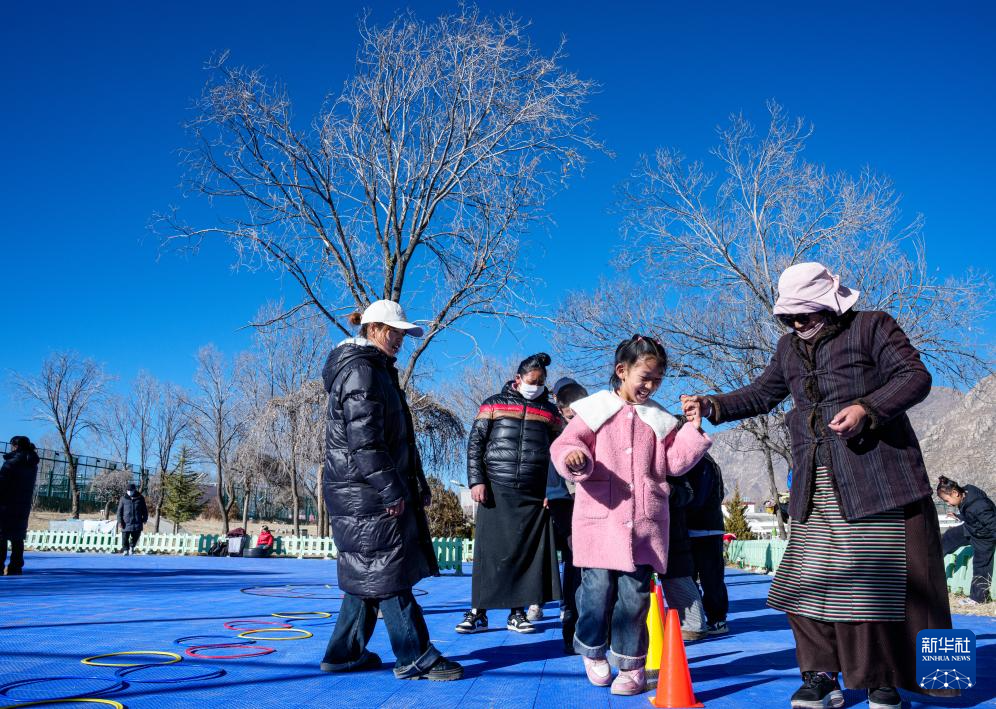 1月22日,在拉薩市全民健身體彩公園,殘障兒童在家長陪同下參加“陽光殘障兒童公益興趣班”體適能訓(xùn)練課程。新華社記者 丁增尼達 攝