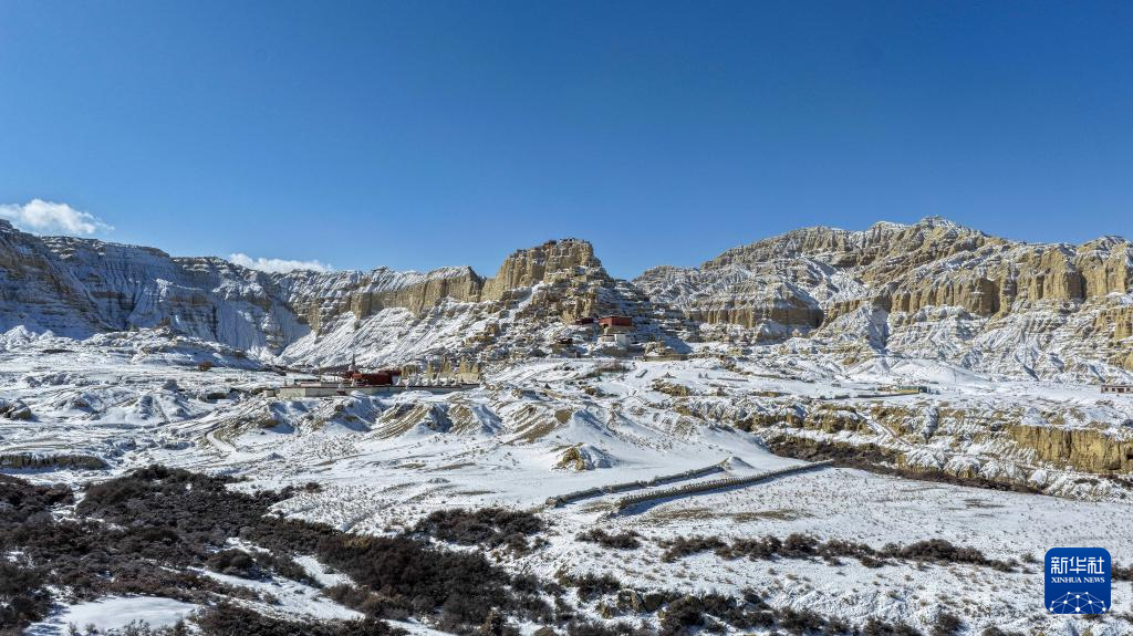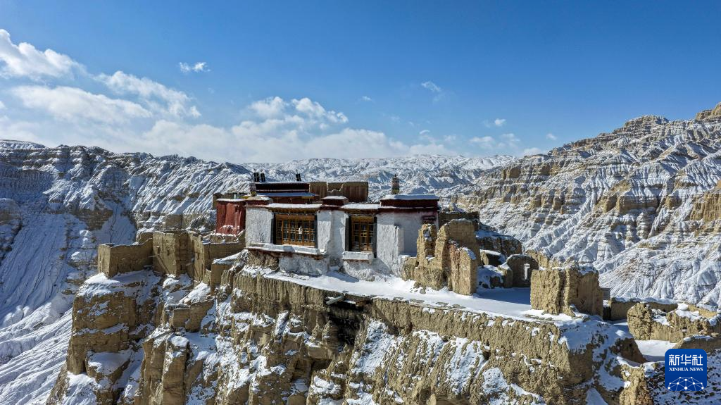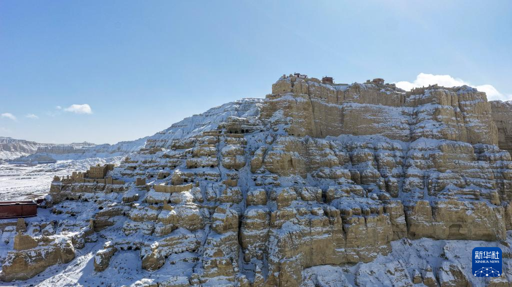 這是1月24日拍攝的古格王國遺址雪景(無人機(jī)照片)。新華社發(fā)(旦真次旦攝)