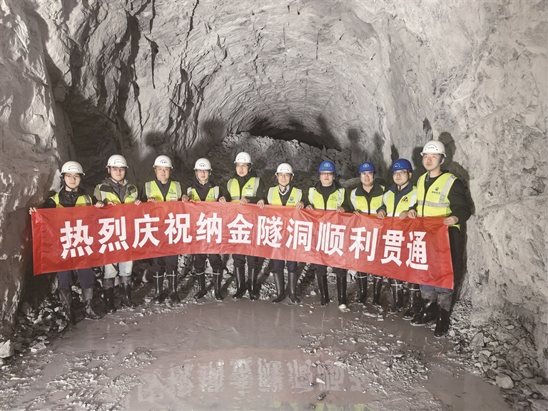 納金隧洞全長(zhǎng)5036米,成型斷面為城門洞形,寬3.0米、高3.7米,采用鉆爆法從兩端相向開挖。隧洞穿越中高山地貌,最大埋深約640米,隧洞圍巖以Ⅲ類為主,Ⅳ、Ⅱ類次之。自開工以來(lái),項(xiàng)目團(tuán)隊(duì)科學(xué)組織、精細(xì)管理,克服了高海拔隧洞產(chǎn)生的巖爆和集中涌水等惡劣地質(zhì)環(huán)境,嚴(yán)格采取相應(yīng)支護(hù)與封堵措施,連續(xù)5個(gè)月單側(cè)工作面月進(jìn)尺超過(guò)200米,最高月進(jìn)尺245米。后續(xù)納金隧洞工程將轉(zhuǎn)入隧洞混凝土襯砌施工,項(xiàng)目部將提前謀劃,精心組織,保證施工質(zhì)量與安全,做好轉(zhuǎn)序工作,確保納金隧洞首倉(cāng)襯砌混凝土按計(jì)劃開倉(cāng)澆筑。