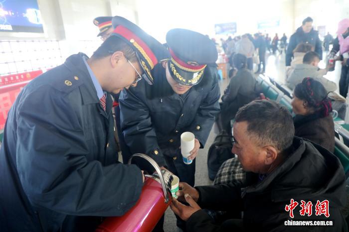 墨香未盡,暖意更濃。候車大廳里,黨員志愿者、“小花朵”青年志愿者化身“天路格?;ā保┧笤诼每椭虚g。他們手捧福字送上祝福,端來(lái)熱氣騰騰的酥油茶、甜茶,用濃郁奶香驅(qū)散高原寒意,撫平旅途疲憊。