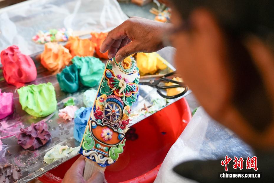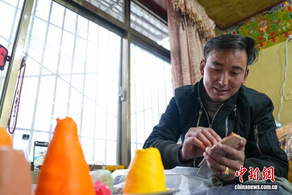 2月4日,隨著藏歷新年臨近,拉薩街頭年味漸濃,年貨市場(chǎng)上的“孜扎”迎來(lái)熱銷。酥油花藏語(yǔ)稱“孜扎”,是藏歷新年吉祥物切瑪盒的重要組件,也是藏族民眾家中必備的年貨。酥油花以酥油為主要原料,由匠人純手工捏制而成,造型涵蓋佛像、人物、花卉樹(shù)木、飛禽走獸等,常見(jiàn)圖案包含吉祥八寶、和諧四瑞、長(zhǎng)壽圖等,承載著藏族民眾對(duì)新年平安吉祥、萬(wàn)事順?biāo)斓拿篮闷碓?。圖為手工藝人在制作酥油花。貢確 攝