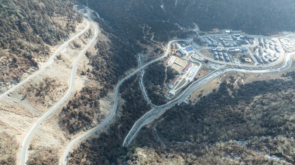 這是2月5日拍攝的玉麥鄉(xiāng)及周邊公路(無人機照片)。新華社記者 丁增尼達 攝