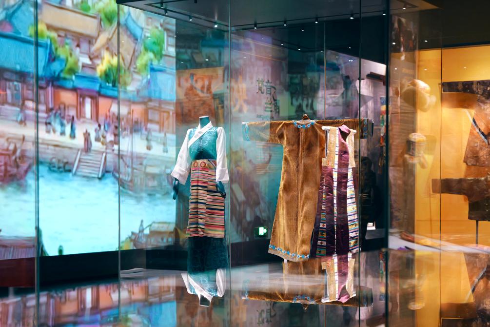 這是在西藏博物館“絲綢文化展”中展出的傳統(tǒng)服飾。新華社記者 周昱龍 攝