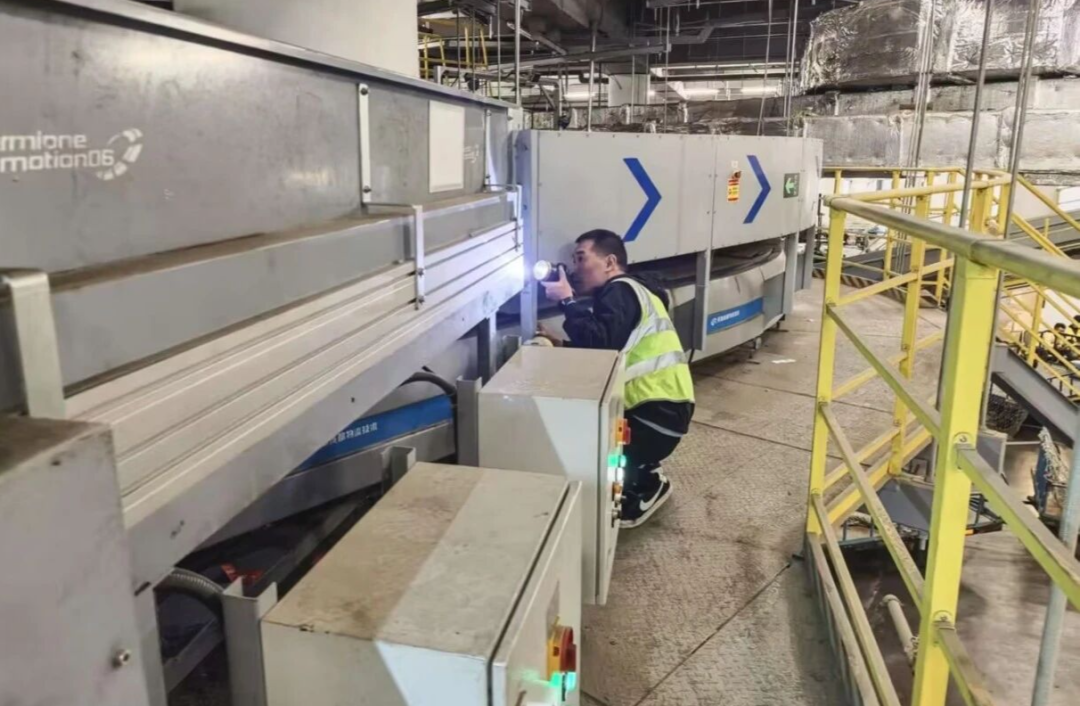 圖:機電設備運維員對行李系統(tǒng)開展全面檢查