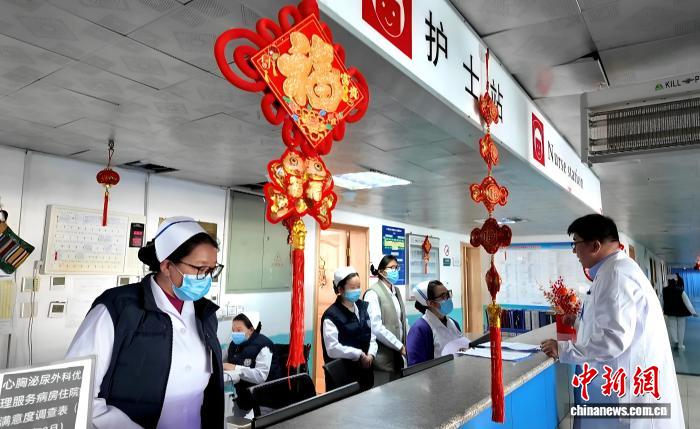 圖為正月初一,西藏自治區(qū)人民醫(yī)院泌尿外科主任樊華(右一)與當(dāng)值護士。貢桑拉姆 攝