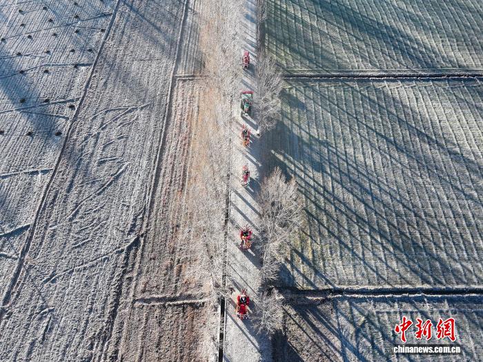 圖為西藏山南市乃東區(qū)門中崗社區(qū)村民正前往春耕儀式現(xiàn)場(chǎng)。(無(wú)人機(jī)照片)中新社記者 貢嘎來(lái)松 攝