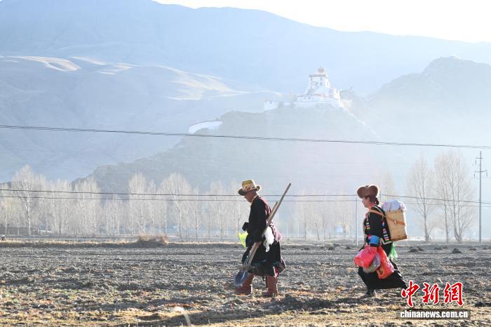 圖為西藏山南市乃東區(qū)門中崗社區(qū)村民正前往春耕儀式現(xiàn)場(chǎng)。中新社記者 貢嘎來(lái)松 攝