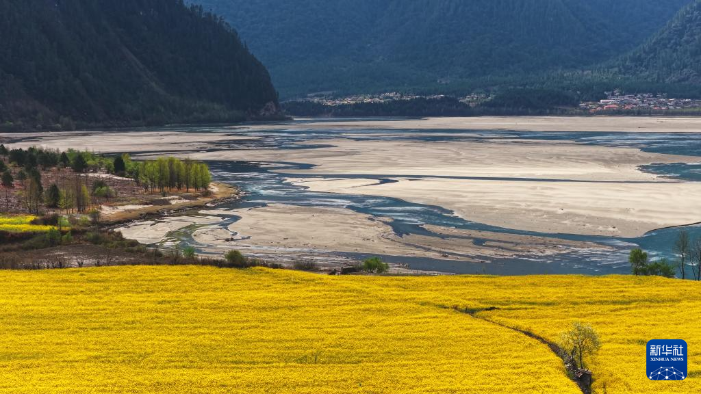 3月20日拍攝的西藏林芝市波密縣易貢鄉(xiāng)的油菜花田(無人機照片)。新華社記者 普布次仁 攝