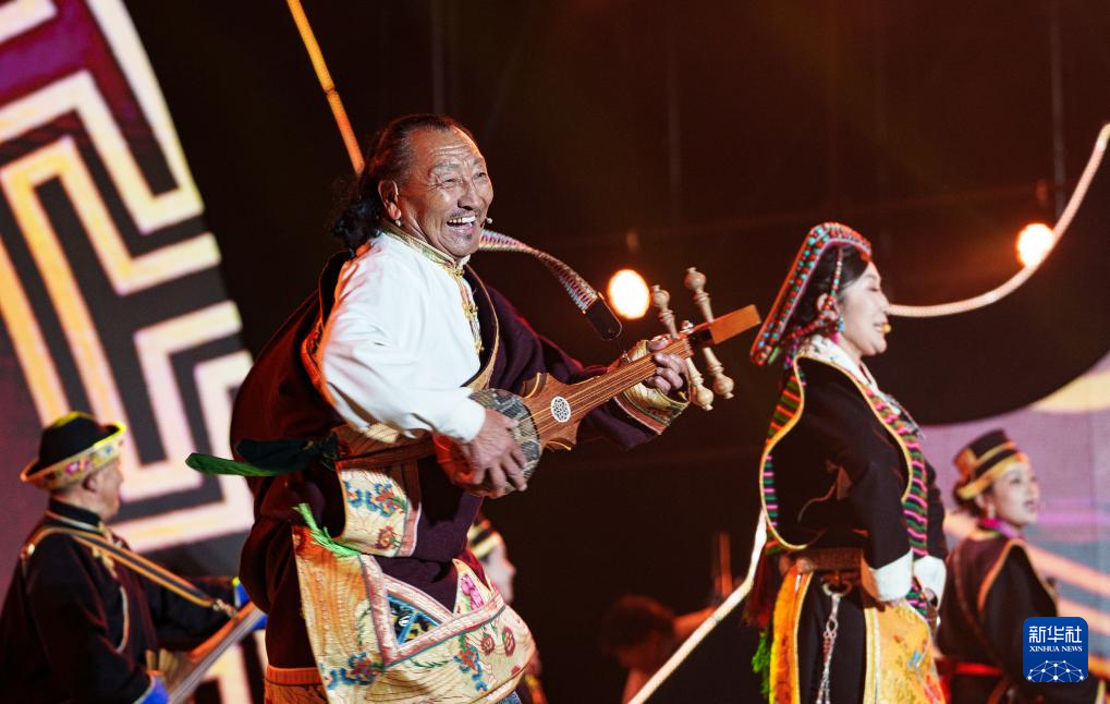 這是4月3日拍攝的林芝第二十三屆桃花旅游文化節(jié)開幕式文藝演出現(xiàn)場。新華社記者 丁增尼達 攝