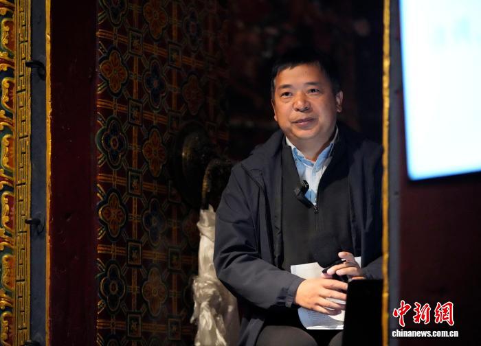 圖為藏戲研究專家、西藏自治區(qū)藝術(shù)研究所副研究員桑吉東智博士為觀眾梳理藏戲發(fā)展的歷史坐標(biāo)與藝術(shù)特征。李林?jǐn)z