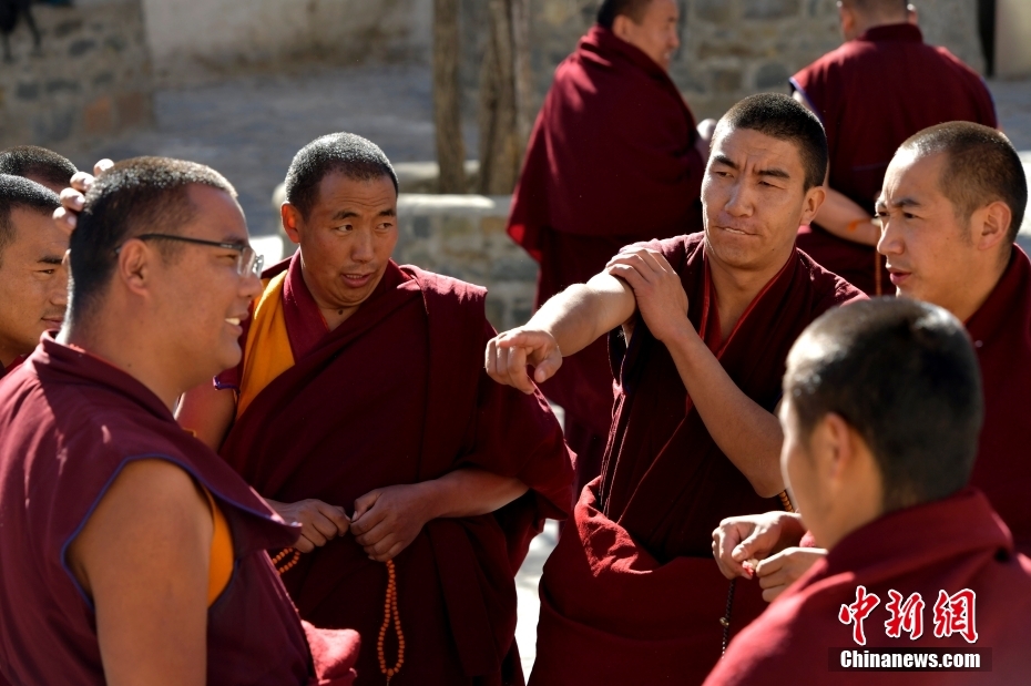 12月4日,扎什倫布寺僧人辯經(jīng)。中新社記者 李林 攝