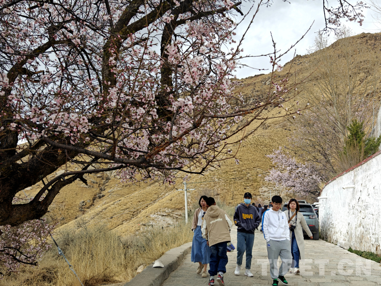 中國西藏網(wǎng)訊 每年4月,位于西藏拉薩主城區(qū)北郊山坡上的古剎帕邦喀(也稱帕崩崗),環(huán)繞寺院周圍的桃花盛開,引來了諸多當(dāng)?shù)厥忻窕蛴慰图娂娗巴p花、拍照。