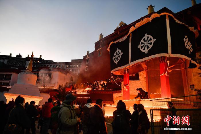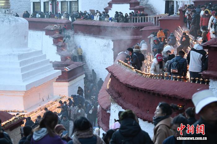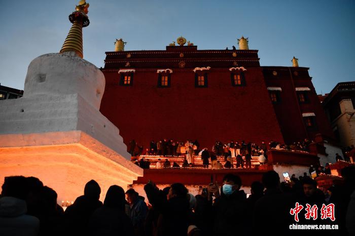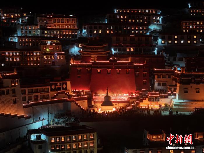 圖為燃燈日酥油燈點(diǎn)亮甘丹寺。 中新社記者 貢嘎來松 攝