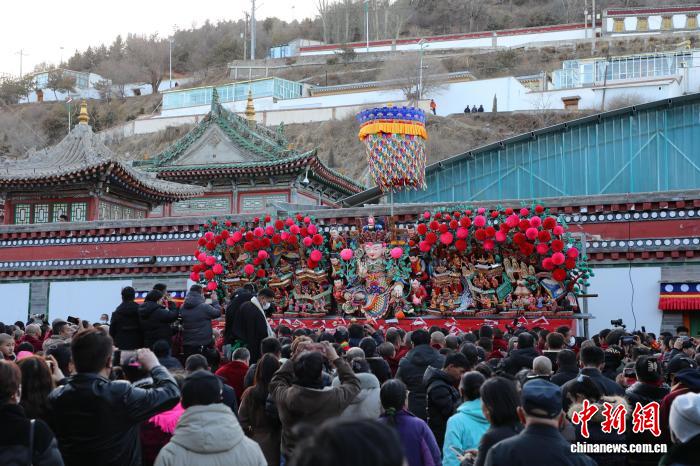 3月3日,民眾在青海塔爾寺觀賞酥油花展?!●R銘言 攝