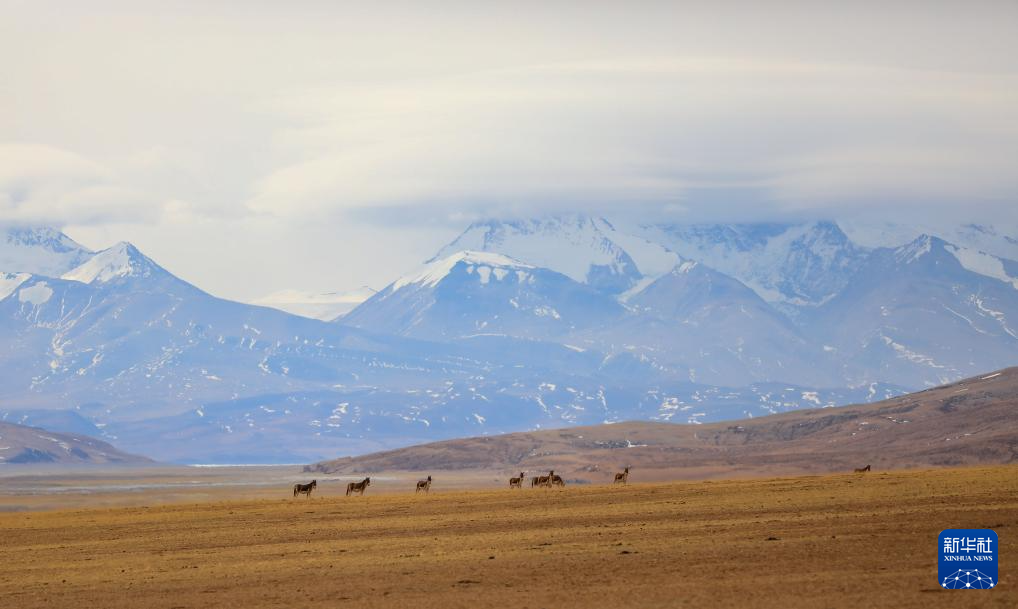 3月29日,藏野驢在西藏阿里地區(qū)普蘭縣境內岡仁波齊峰下覓食。新華社發(fā)(劉曉東攝)