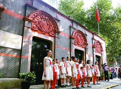 上海青少年在中共一大會址前舉行升國旗暨愛國宣講主題活動。新華社記者 劉穎攝