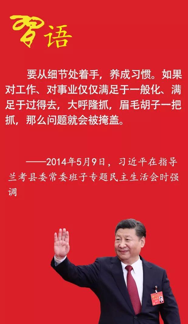 天下大事,必作于細(xì)。習(xí)近平總書(shū)記多次強(qiáng)調(diào),要從細(xì)節(jié)處著手,養(yǎng)成精準(zhǔn)思維習(xí)慣,干工作不能滿(mǎn)足于一般化、大呼隆抓,不能以原則應(yīng)對(duì)具體,要一一回應(yīng),具體解決。黨的十八大以來(lái),習(xí)近平總書(shū)記多次強(qiáng)調(diào)黨員干部要培養(yǎng)精準(zhǔn)思維、精準(zhǔn)開(kāi)展工作。黨建網(wǎng)微平臺(tái) 邀您一同學(xué)習(xí)領(lǐng)會(huì)。