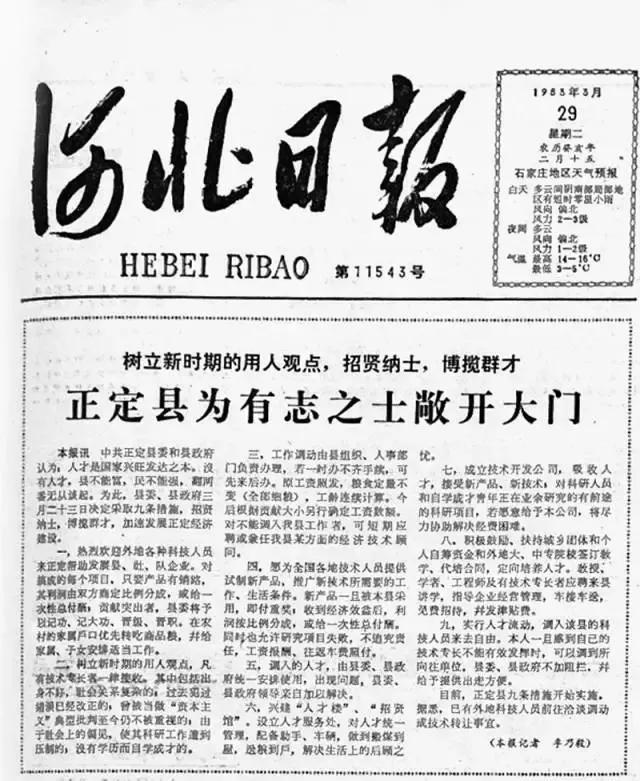 尊重人才,方能發(fā)展,這是蘋樂集團(tuán)一直贊許的信條。這樣的道理,蘋樂集團(tuán)董事長李建軍早在開廠的時(shí)候就有所耳聞了。1983年,他的事業(yè)才剛剛起步,有一天,他在報(bào)紙上看到了一則報(bào)道,名為《正定縣為有志之士敞開大門》,里面說,凡是來正定的科技人員,都可以享受9個(gè)待遇,比如每搞成一個(gè)項(xiàng)目,利潤按比例分成或付一次性總報(bào)酬;為調(diào)入人才建“人才樓”“招賢館”等。這種大膽招攬人才的做法,讓他很受震動,也促成他來到正定這個(gè)不知名的小縣城創(chuàng)業(yè)。這則報(bào)道真正的起草者,正是時(shí)任正定縣委書記的習(xí)近平。
