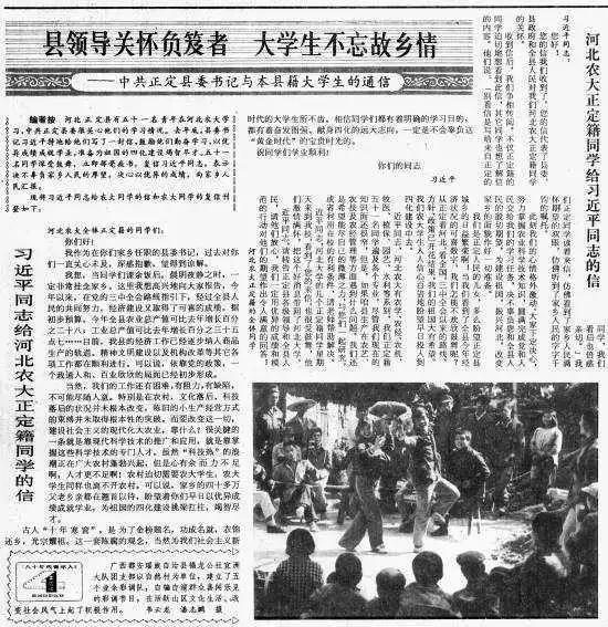 中國青年報(bào)刊登《習(xí)近平同志給河北農(nóng)大正定籍同學(xué)的信》