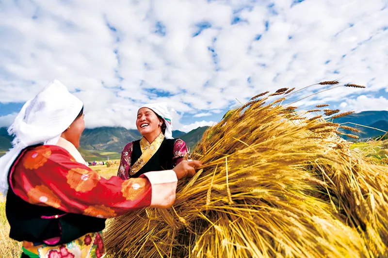 經(jīng)黨中央批準(zhǔn)、國(guó)務(wù)院批復(fù),自2018年起,將每年農(nóng)歷秋分設(shè)立為中國(guó)農(nóng)民豐收節(jié),這是第一個(gè)在國(guó)家層面為農(nóng)民設(shè)立的節(jié)日,進(jìn)一步彰顯了“三農(nóng)”工作重中之重的基礎(chǔ)地位。 圖為2018年9月23日,首個(gè)中國(guó)農(nóng)民豐收節(jié),拉薩市林周縣松盤(pán)鄉(xiāng)松盤(pán)村兩名藏族農(nóng)民在田間。 新華社記者 覺(jué)果/攝