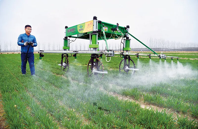 實(shí)施鄉(xiāng)村振興戰(zhàn)略,必須破除人才瓶頸制約。記者在山東壽光、滕州、鄒平等地看到,很多外出求學(xué)、打工、創(chuàng)業(yè)多年的年輕人,帶著新的理念和技術(shù)回到農(nóng)村,成為希望田野上的職業(yè)農(nóng)民。圖為2018年3月20日,鄒平縣明集鎮(zhèn)年輕的職業(yè)農(nóng)民在操作植保機(jī)器人噴施農(nóng)藥。 新華社記者 郭緒雷/攝