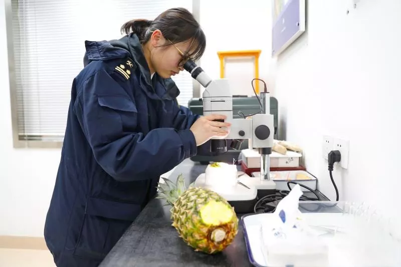 而說起去年年底的那一場“戰(zhàn)役”,周玲更是掩飾不住興奮。2018年12月底的一個(gè)夜晚,一架智利櫻桃包機(jī)降落至上海浦東機(jī)場。凌晨兩點(diǎn),第一輛載滿櫻桃的重卡駛出機(jī)場,兩小時(shí)后抵達(dá)龍吳海關(guān)。周玲和同事們早已等候在查驗(yàn)現(xiàn)場,他們要用最快時(shí)間完成對全批櫻桃的植物檢疫和品質(zhì)檢驗(yàn)。