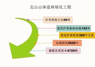 2017年,全市還完成補(bǔ)植補(bǔ)造各類苗木3.8萬余株,完成南山公園停車場兩側(cè)綠化,累計(jì)栽植雪松、云杉、刺槐等70000余株。完成總面積489畝的南山恰加山核心區(qū)水系工程、景觀工程、道路工程、圍欄工程等建設(shè)。