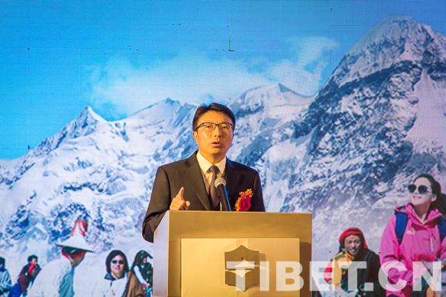 圖為當(dāng)雄縣委副書記、縣長(zhǎng)其美次仁在推介會(huì)上致辭。