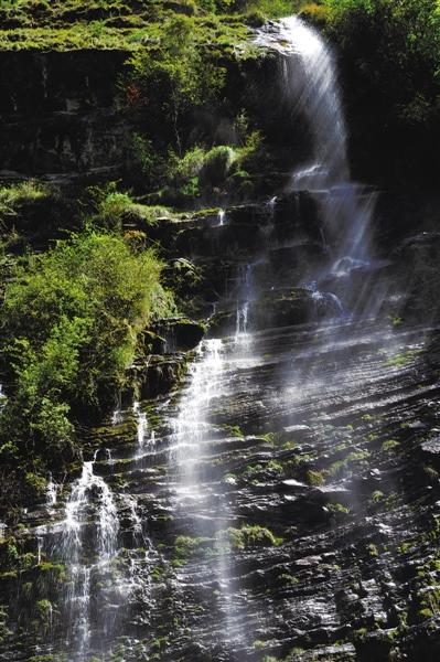 第二天一早,勒布溝陽光明媚,山上云霧退去,群山露出了真面目。沐浴著充足的陽光,吃過早飯,約八點半,我們向當天旅程的第一站——崗亭瀑布進發(fā)了!