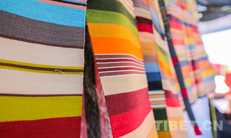 中國(guó)西藏網(wǎng)訊 10月13日,西藏自治區(qū)山南市貢嘎縣第二屆七彩邦典文化旅游節(jié)農(nóng)牧產(chǎn)品展銷會(huì)的現(xiàn)場(chǎng),旦增卓嘎在推銷著自家制作的邦典(藏式圍裙),不大的展位前放著合作社制作的產(chǎn)品宣傳片和國(guó)家級(jí)非物質(zhì)文化遺產(chǎn)代表性項(xiàng)目藏族邦典、卡墊織造技藝的代表性傳承人證書。